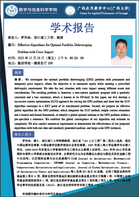 学术报告:Effective Algorithms for Optimal Portfolio Deleveraging Problem with Cross Impact