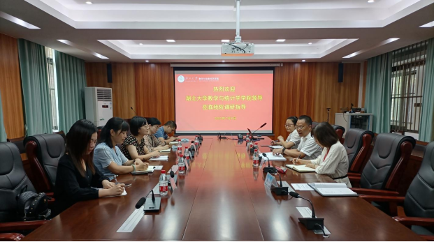 2022年7月4日上午,湖北大学数学与统计学学院党委书记周霞、党委副书记何肖,湖北大学党委组织部副部长、机关党委副书记黄江英、党委组织部组织科科长马兴建、党委组织部干部科干部陈秋瑞一行5人莅临英国上市公司365数学与信息科学学院调研指导工作。学院党委书记黄建荣等领导班子成员参加了调研交流会。