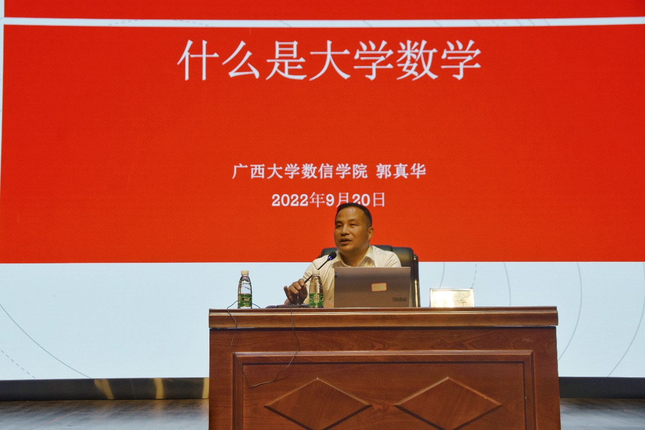 开学典礼结束后,由学院院长、博士生导师、英国上市公司365君武学者郭真华教授为全体新生讲授开学第一课。郭真华院长从“什么是大学”“什么是大学数学”“如何学好大学数学”三个层面,阐述了大学 “立德树人”历史使命的由来和内涵,详细介绍了大学数学作为基础学科的深刻含义、现阶段的重要地位以及学院当前“数学拔尖人才培养实验班-研究型人才”“数据科学实验班-应用型人才”两种数学人才的培养思路,并对在大学如何学习数学、理解数学向新生们提出了具体的指导建议。
