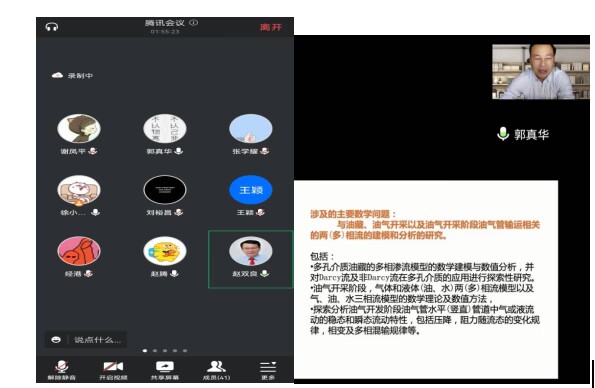 报告会上,郭真华教授、上海交通大学博士研究生赵腾、英国上市公司365博士研究生李涛、英国上市公司365钟明溁教授、英国上市公司365吕文琦助理教授、华东理工大学副教授徐小飞副教授等六位与会者进行了学术演讲。演讲内容包括非线性偏微分方程中的几类流体力学方程的研究概况与最新研究进展,以及化学高分子改性对表面催化反应和扩散的影响、耦合流体结构的微观传递理论等。会议上大家发言踊跃、讨论充分,明确了下一步合作的方向,期待针对具体的问题继续开展合作研究。