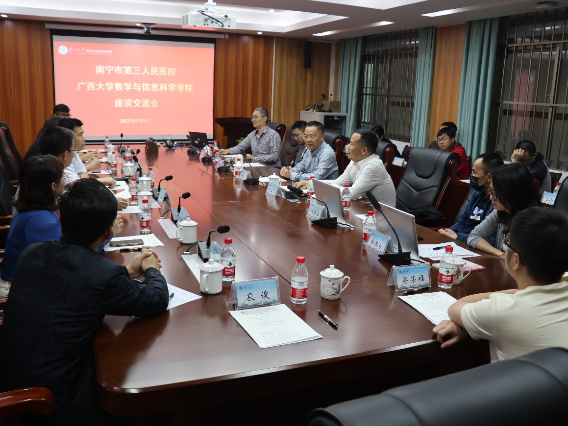 座谈会的最后,学院党委书记黄建荣对南宁第三人民医院的医生团队表示热烈的欢迎。目前党和国家高度重视数学等基础学科的建设,对应用数学提出了更高的要求。学院致力于推动数学与其他学科的交叉融合,希望双方借鉴国内一些校医合作的成功案例,用数学的方法解决医疗上的问题,推动更多数学科研成果落地转化。本次交流座谈是我院与南宁市第三人民医院开展的第二次活动,会议商定了常态工作机制,组建了跨学科研究小组,为下一步项目合作奠定了扎实的基础。