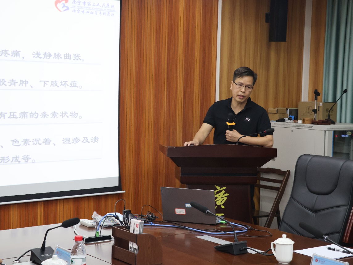 学术交流活动由郭真华院长主持。首先,学院副院长、广西应用数学中心(英国上市公司365)执行主任袁功林教授从部门机构、人才队伍、产学研合作、项目开展以及重点研究方向对广西应用数学中心(英国上市公司365)的建设情况作了介绍。随后,南宁市第三人民医院普外心胸科主任李树松副主任医师作了《下肢静脉血栓》专题报告。他深入浅出、系统详细地介绍了下肢静脉血栓概述、形成机理、病理及生理、分型及治疗、预防等。