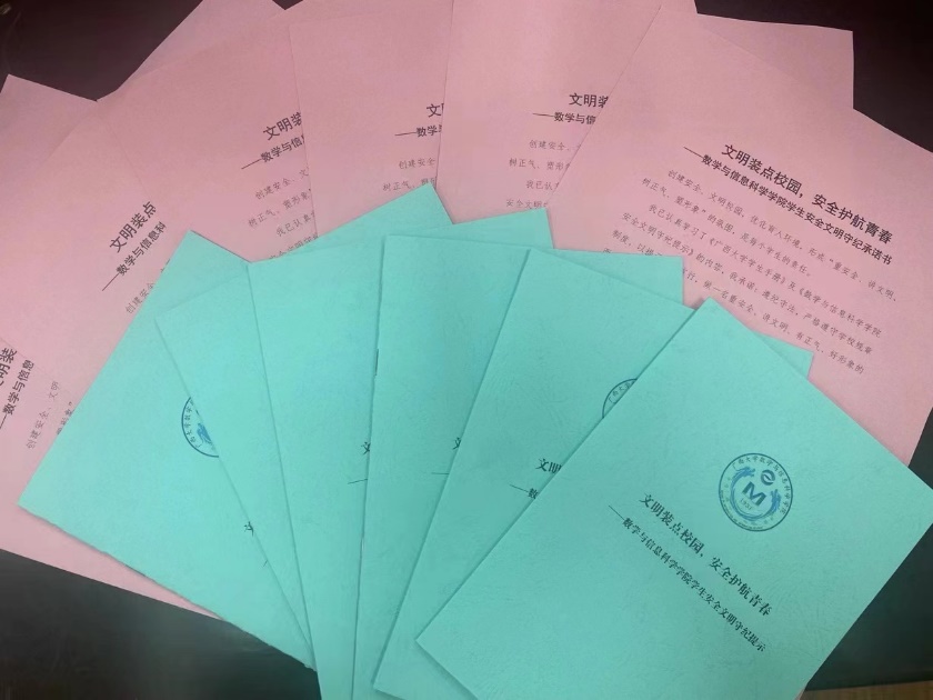 全体学生在会上共同学习《数学与信息科学学院学生安全文明守纪提示》小册子,其中安全提示涵盖人身安全、财产安全、网络安全、交通安全、消防安全、社交安全等内容,文明提示涵盖课堂文明、举止文明、宿舍文明、网络文明、就餐文明、诚信文明等内容。