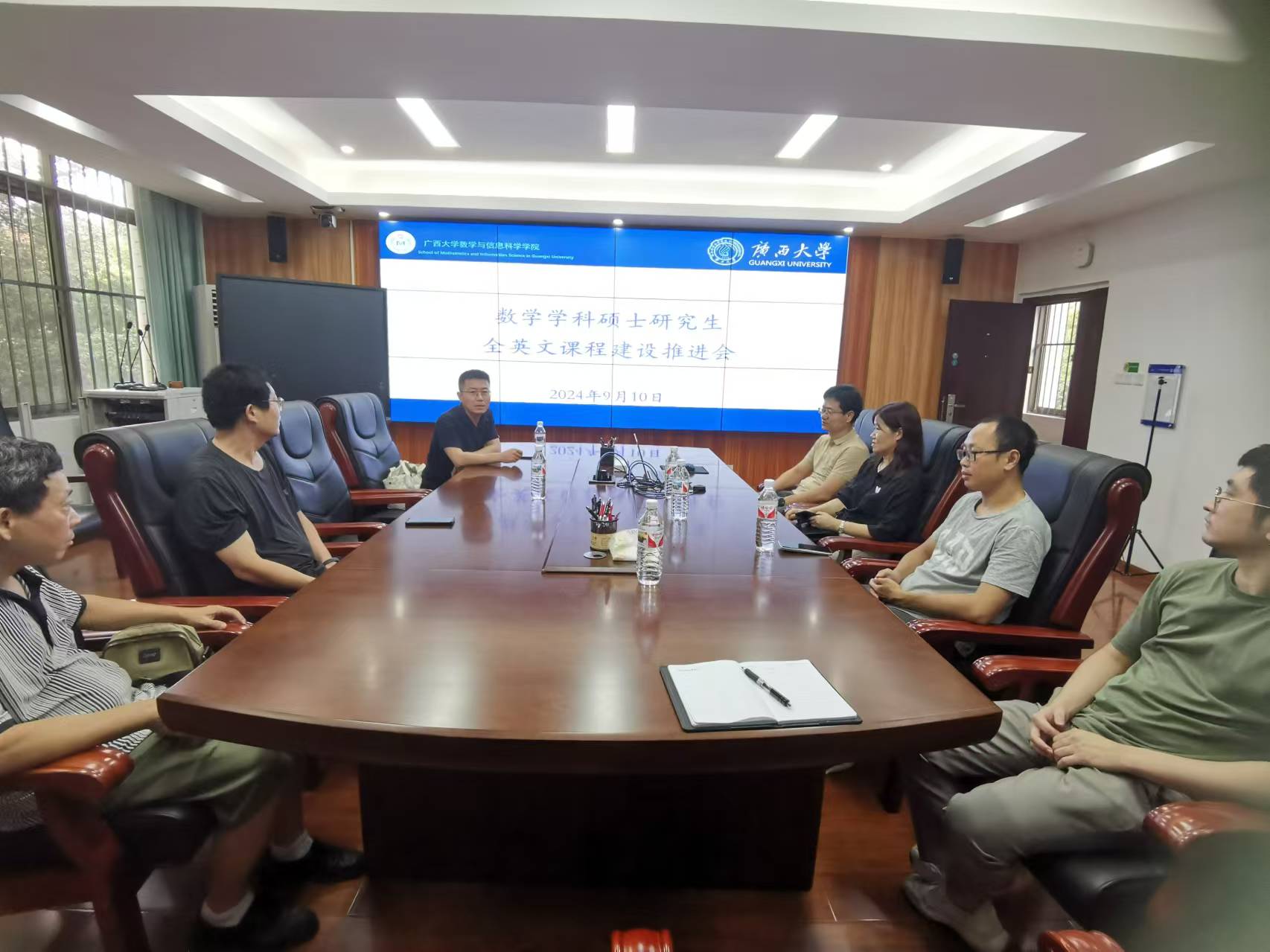 为加速提升数学学科研究生教育的国际化水平,推进全英文教学环境的构建,我院于9月10日下午在213会议室召开了数学学科硕士研究生全英文课程建设专项推进会议,会议由袁功林副院长主持,相关课程负责人参会。