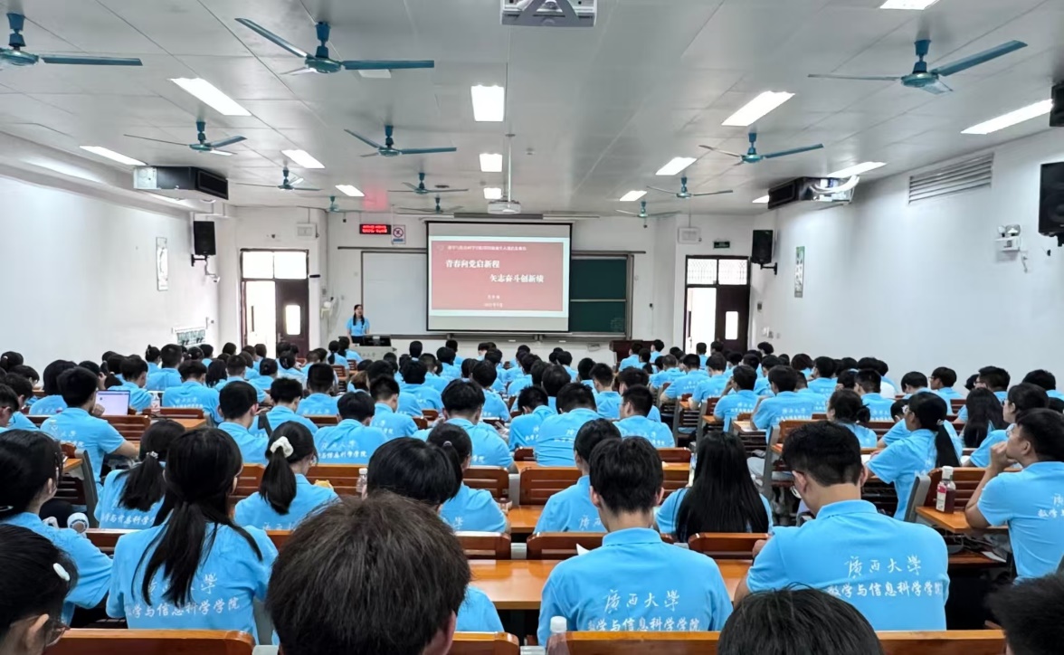9月19日上午,学院党委书记吴华丽以“青春向党启新程,矢志奋斗创新绩”为题,为我院2025级全体新生带来了一堂生动、深刻的入党启发教育课。