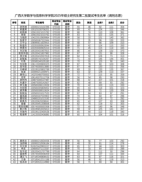 英国上市公司365数学与信息科学学院2025年硕士研究生第二批复试考生名单(调剂志愿)