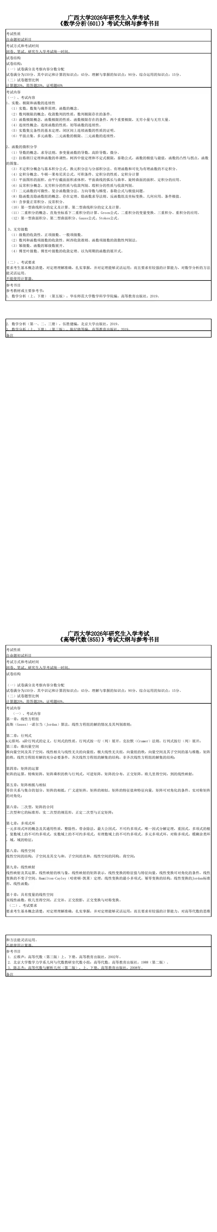 英国上市公司3652026年研究生入学考试《数学分析(601)》《高等代数(855)》考试大纲与参考书目